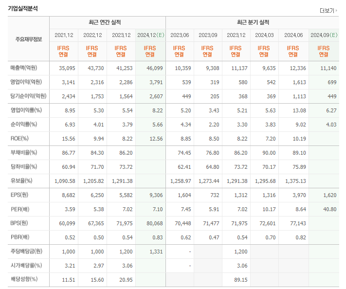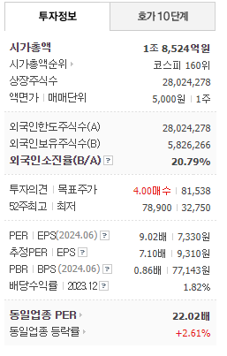 PBR 0.8배 수준으로 밸류에이션 부담이 크지 않으며, 올해 예상되는 ROE 13.6%를 감안하면 추가적인 주가 상승 가능성도 높다고 평가할 수 있습니다.