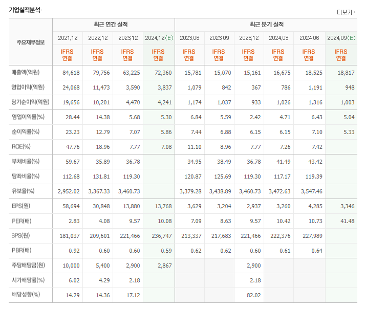 금호석유(011780)의 주가 전망은 업황의 점진적 회복과 함께 주주환원정책의 이행이 주요하게 작용할 것입니다. 최근 발표된 2024년 3분기 실적에 따르면 매출액은 1.9조 원, 영업이익은 약 800억 원으로 추정되며, 이는 시장 컨센서스를 다소 밑도는 수치입니다. 그럼에도 불구하고 합성고무, 라텍스 시장에서의 회복세는 금호석유 주가에 긍정적인 영향을 미칠 전망입니다.