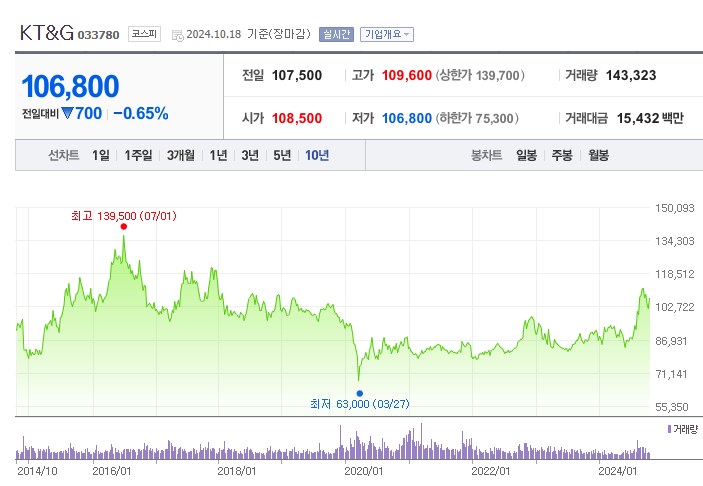 안녕하세요 오늘은 KT&G 주가 전망에 대해 정리하며, 해당 주식의 장 단기 투자 전략을 세워보도록 하겠습니다.