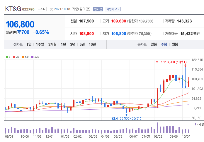 안녕하세요 오늘은 KT&G 주가 전망에 대해 정리하며, 해당 주식의 장 단기 투자 전략을 세워보도록 하겠습니다.