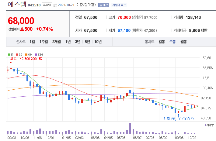 에스엠의 주가는 최근 12개월간 크게 변동했으며, 팬덤의 힘에 따라 단기간에 상승하거나 하락하는 경향을 보이고 있습니다. 이러한 변동성을 감안할 때, 중장기적으로는 안정적인 사업 확장이 주가 회복의 열쇠가 될 것입니다.