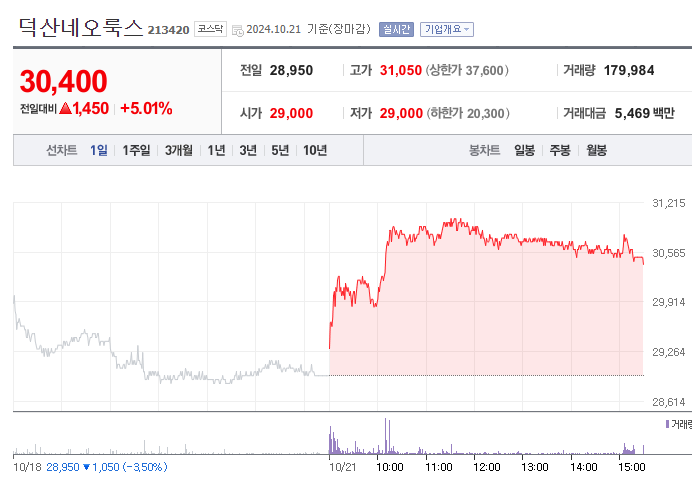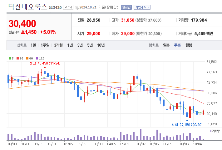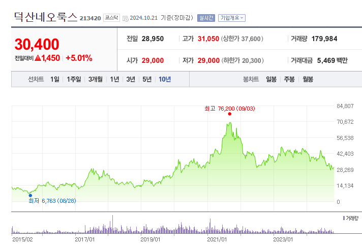 안녕하세요 오늘은 덕산네오룩스 주가 전망에 대해 정리하며, 해당 주식의 장 단기 투자 전략을 세워보도록 하겠습니다.