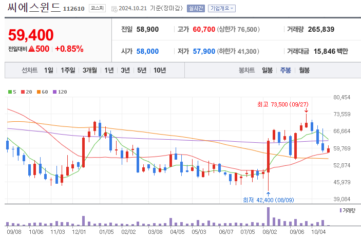 씨에스윈드(112610)의 주가 전망은 풍력 발전 산업의 성장과 글로벌 시장에서의 확장 가능성에 큰 영향을 받고 있습니다. 주가는 현재 2024년 10월 기준으로 약 80,000원대에서 거래 중이며, 최근 몇 년간 주가 변동이 상당히 큰 편입니다. 이번 분석에서는 씨에스윈드 주가와 관련된 주요 이슈를 다루고자 합니다.