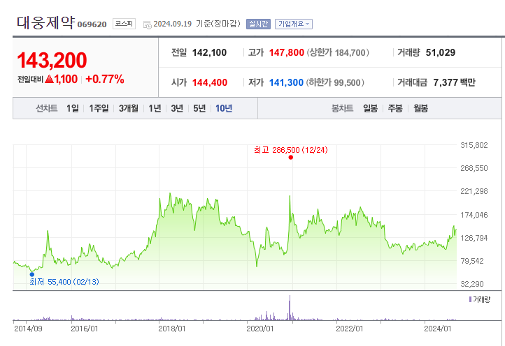 투자의견은 ‘매수(Buy)’로 유지되며, 목표 주가는 17.5만 원으로 상향 조정되었습니다. Evolus의 호실적과 대웅제약의 지속적인 신약 개발이 주된 상승 요인으로 작용하고 있습니다. 현재 주가는 13.5만 원 수준으로, 이 목표 주가를 기준으로 약 30% 이상의 상승 여력이 남아 있습니다. 글로벌 톡신 시장에서의 견조한 성장이 뒷받침되고 있어, 장기적인 투자 가치는 매우 높습니다.