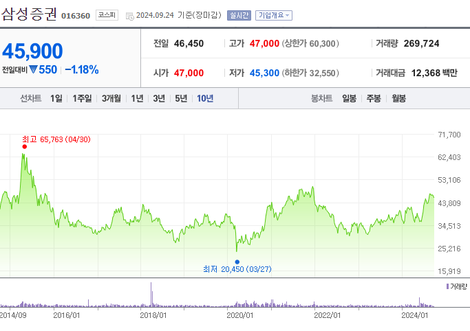 2024년 삼성증권의 매출액2조 1,150억 원, 영업이익1조 960억 원으로 예상됩니다. 자본 대비 수익성을 나타내는 **ROE(자기자본이익률)**는 **11.9%**로, 안정적인 재무 구조를 바탕으로 지배주주 순이익이 지속적으로 증가할 것으로 보입니다. 특히, 배당성향을 유지하면서도 주주가치 제고 방안을 모색하고 있어 중장기적으로 긍정적인 전망을 보여주고 있습니다.