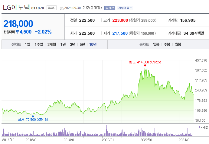 LG이노텍의 목표주가는 330,000원으로 유지되었으며, 투자의견은 매수입니다. 2024년 4분기에는 매출액 6조 9,200억 원, 영업이익 4,484억 원으로, 분기 실적이 크게 개선될 것으로 기대됩니다. 4분기부터 AI 기능이 탑재된 제품에 대한 소비자 반응이 긍정적일 경우, 주가는 더욱 상승할 여력이 충분합니다.