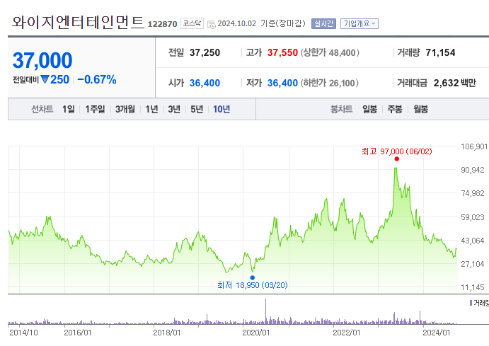 2024년 3분기 와이지엔터는 영업손실 36억 원으로 적자를 기록할 것으로 예상됩니다. 주요 아티스트들의 컴백 부재와 무형자산 상각비 등의 비용이 수익성에 악영향을 미쳤습니다.