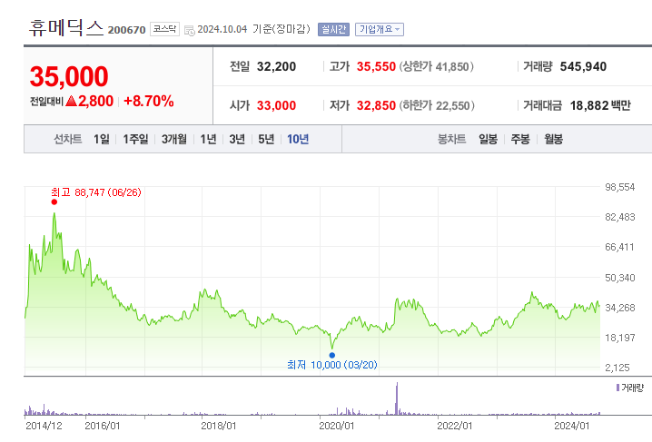 안녕하세요 오늘은 휴메딕스에 대해 정리해보도록 하겠습니다. 기업개요와 투자정보 그리고 실적 등을 살펴보고 향후 주가 전망에 영향을끼칠 이슈들과 목표주가에 대해 알아보도록 하겠습니다.
