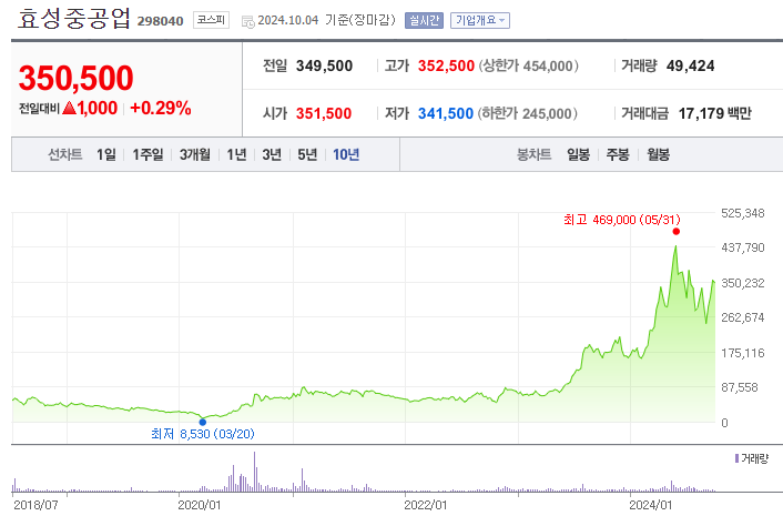 효성중공업은 중공업 부문에서의 꾸준한 성장세를 보이고 있습니다. 특히, 초고압 변압기 시장에서 수익성이 점차 개선되고 있으며, 미국 및 유럽을 중심으로 한 글로벌 수주가 매출 증가에 크게 기여하고 있습니다.