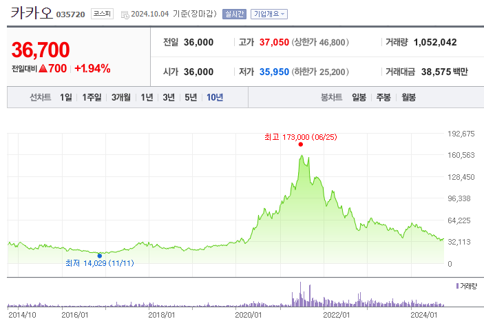 다만, 톡스토어 거래액은 중국 이커머스의 최저가 가격 책정 영향으로 역성장을 보였습니다. 이러한 변수는 카카오의 커머스 성장에 부정적인 영향을 미쳤으며, 주가는 최근 38,450원으로 거래되고 있습니다.