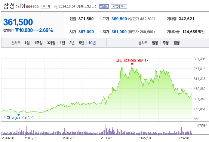 또한, 삼성SDI는 2024년 목표주가를 440,000원으로 하향 조정했으며, 이는 현재 주가 대비 약 42.4%의 상승 여력을 나타냅니다. 따라서 중장기적인 관점에서 매수 전략을 고려할 만한 시점으로 평가됩니다.