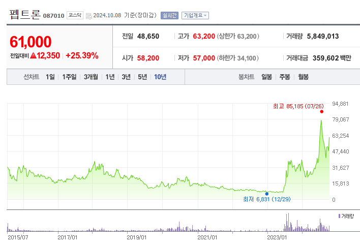 안녕하세요 오늘은 펩트론 주식에 대해 정리하며, 장 단기 투자 전략을 세워보도록 하겠습니다.