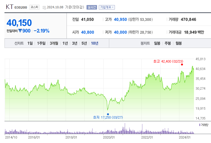안녕하세요 오늘은 KT 주식에 대해 정리하며, 장 단기 투자 전략을 세워보도록 하겠습니다.