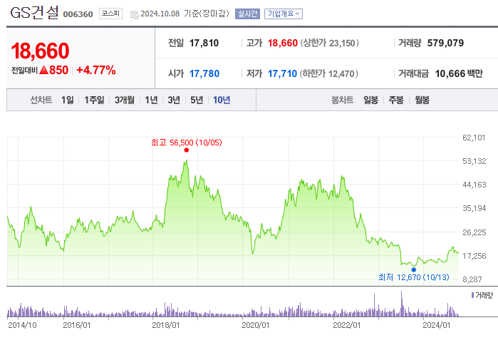 안녕하세요 오늘은 GS건설 주식에 대해 정리하며, 장 단기 투자 전략을 세워보도록 하겠습니다.