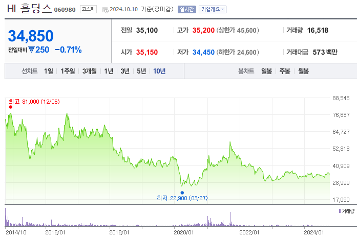 안녕하세요 오늘은 HL홀딩스 주가 전망에 대해 정리하며, 해당 주식의 장 단기 투자 전략을 세워보도록 하겠습니다.