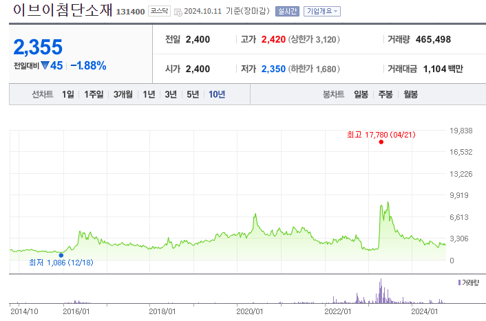 안녕하세요 오늘은 이브이첨단소재 주가 전망에 대해 정리하며, 해당 주식의 장 단기 투자 전략을 세워보도록 하겠습니다.