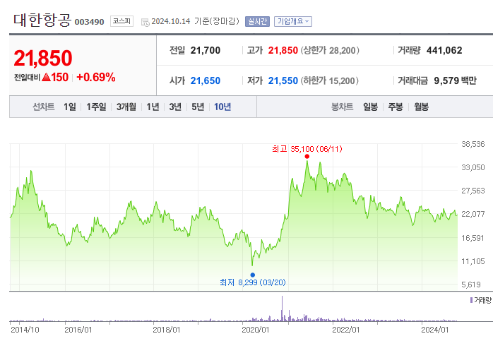 1. 대한항공의 현재 주가 동향
