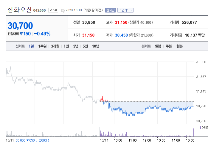 1. 한화오션의 현재 주가 동향