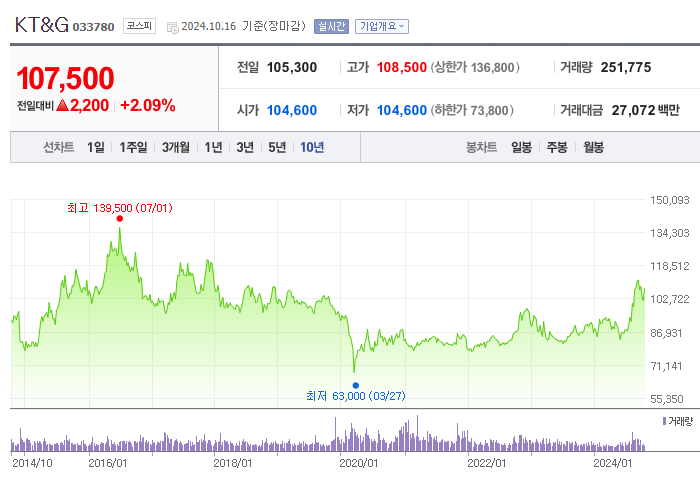 안녕하세요 오늘은 KT&G 주가 전망에 대해 정리하며, 해당 주식의 장 단기 투자 전략을 세워보도록 하겠습니다.